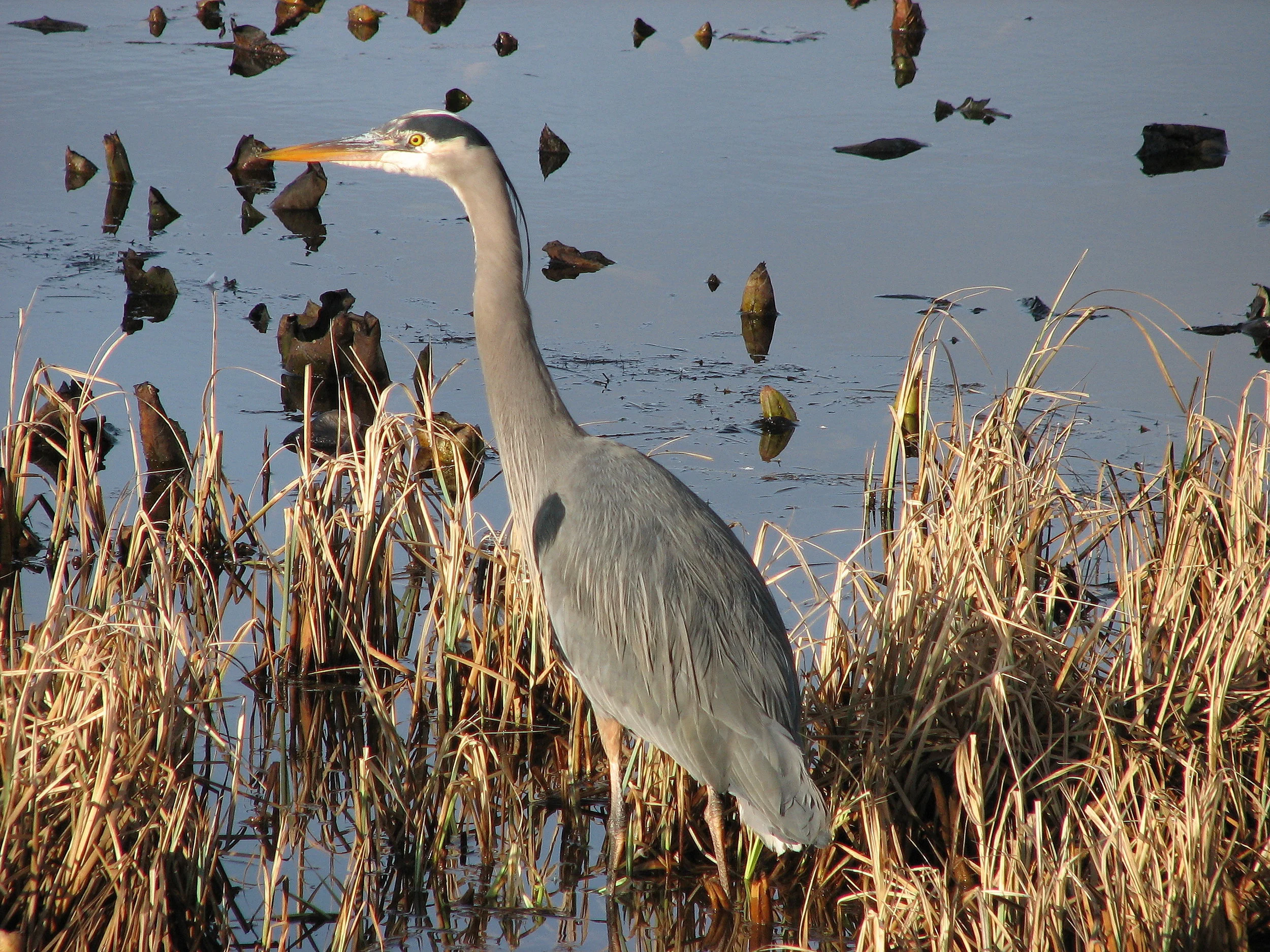 Great blue heron hunting for small fish. Photo credit: Richard Nelson.