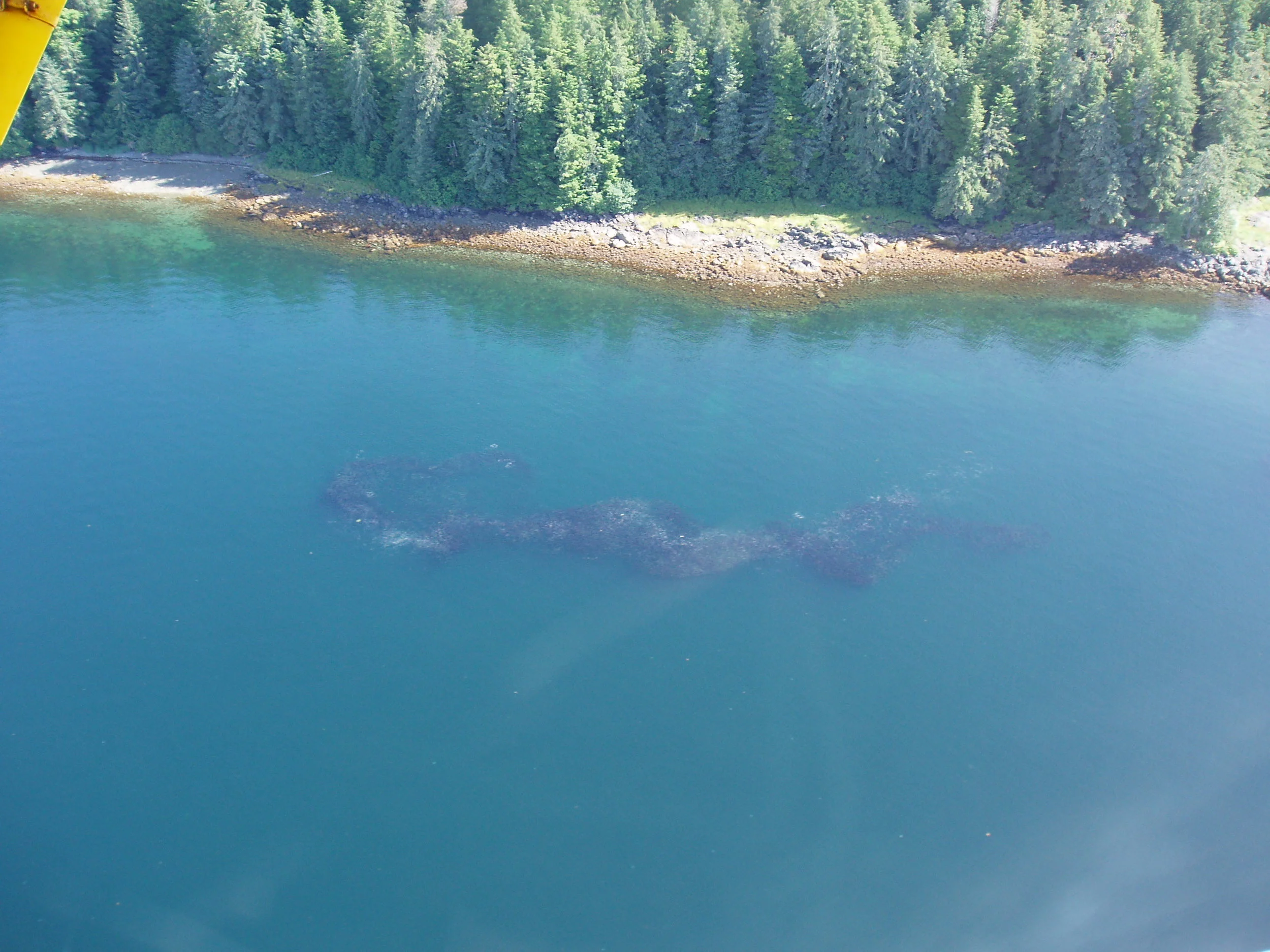 Thousands of adult pink salmon in Starrigavin Bay, heading for the estuary. Photo credit: ADF&G.