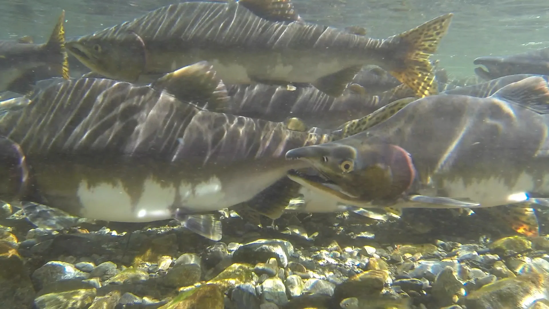 Finally, they are ready for the single most important event in their lives. Both pinks and chums run up the river to their spawning beds and begin laying their eggs within 48 hours. In years with huge returns, some of the salmon even spawn in the estuary itself.